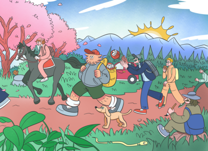 After working for a manufacturer, he began her career as a freelance illustrator in 2024. Having grown up surrounded by nature, he specializes in drawing scenes filled with greenery and human warmth.His style is characterized by fluid lines and subtly humorous expressions that capture everyday moments.